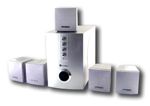 Sistem audio 5.1 - 55 W - Putere sinus: 30W + 5W*5 - Difuzoare: 5,5" + 3" x 5 - Impedanta iesire: 8 ohm - Raport semnal/zgomot: ≥80dB - Raspuns in frecventa: Subwoofer: 20Hz-200Hz Sateliti:150Hz-20 KHz Control: Fata, Spate, Bass Culoare: argintiu